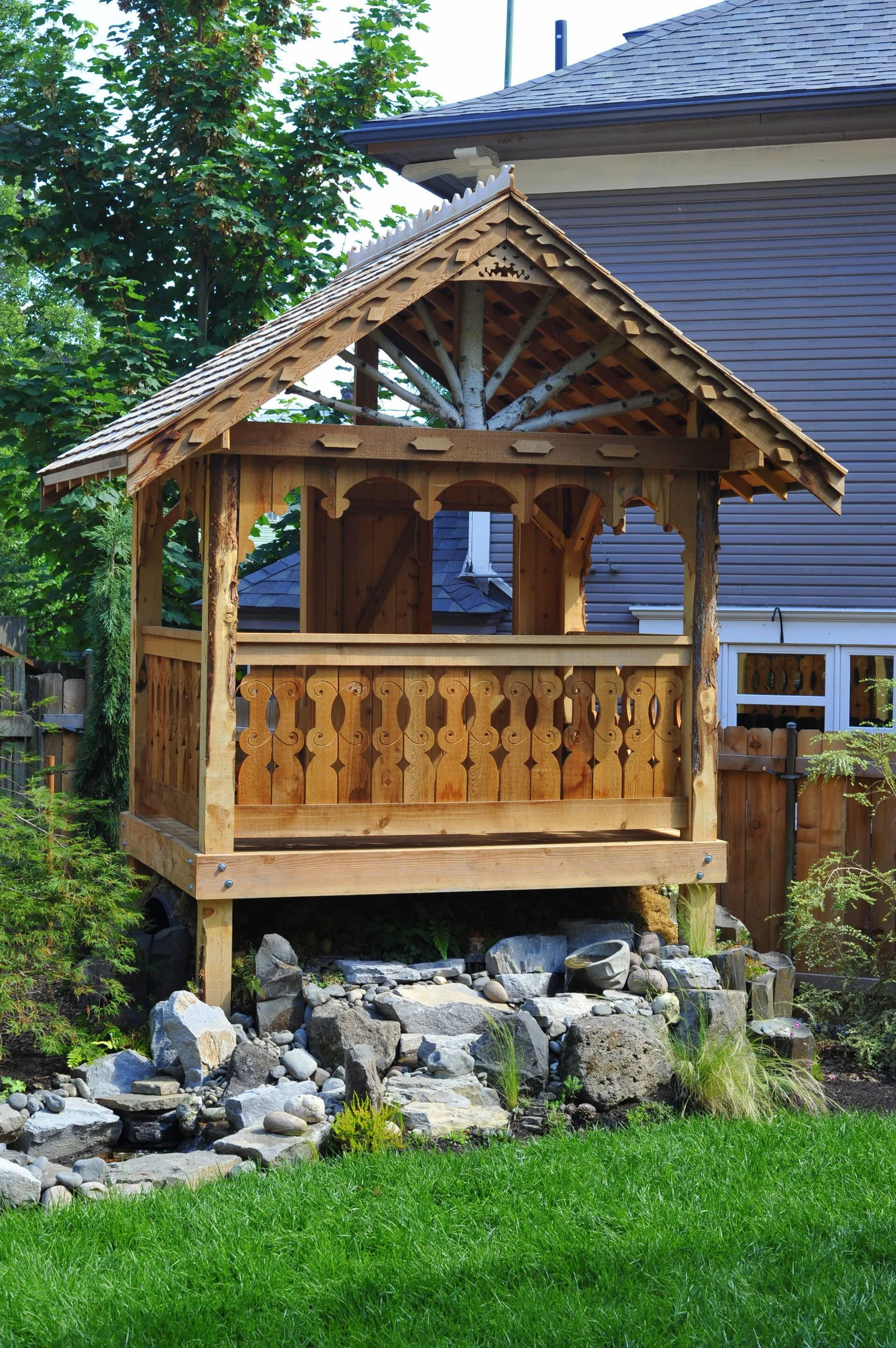 This dreamy backyard offers opportunities for the whole family to play and relax. There is a hot tub, whimsical playhouse with a hobbit tunnel beneath, an eco-lawn, cedar deck, arbor-covered benches, and a fairy waterfall and pool to dip your feet in. And there is space to grow fruits, veggies, and herbs with a greenhouse, raised beds and edible plantings. Many Northwest native plants are incorporated into the backdrop to bring in bird visitors and host pollinators.